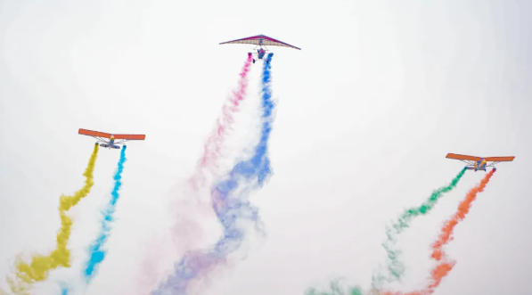 航空主题沉浸式体验,起跑仪式有固定翼飞机拉烟表演,分枪发令,配身份识别手环保障安全